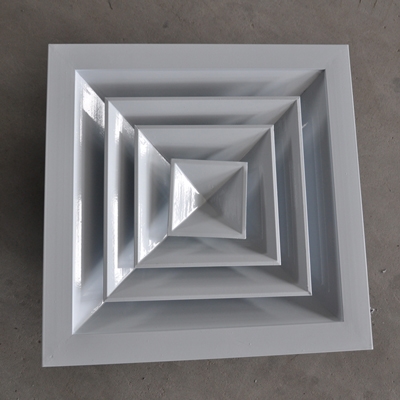 方型散流器使用該類型散流器時(shí)要與調(diào)節(jié)閥配合使用,才能在系統(tǒng)中得到理想的氣流分布。此風(fēng)口的葉片角度為固定式,不能隨意調(diào)節(jié),整個(gè)葉片與邊框采用分離結(jié)構(gòu)
